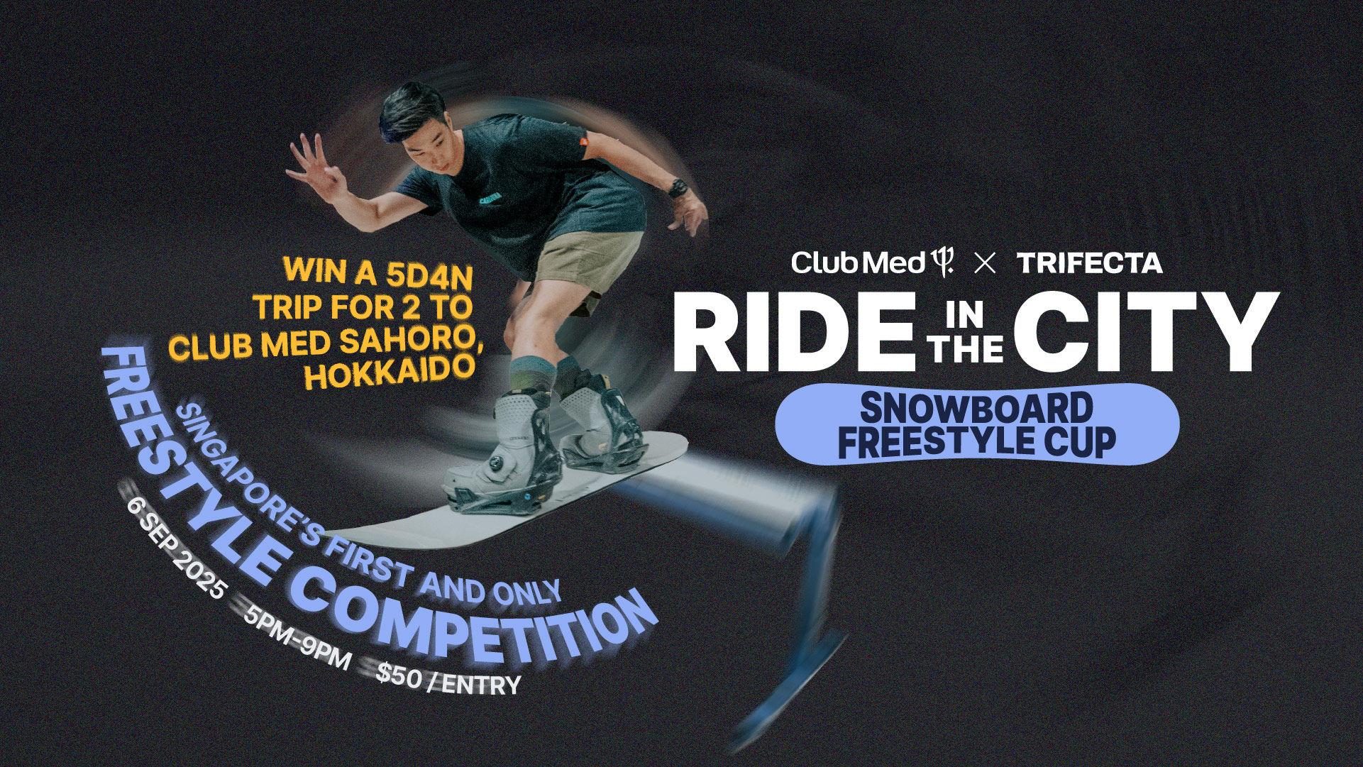 Club Med x TRIFECTA: Ride in the City's SNOWBOARD FREESTYLE COMPETITION is back for its second year running, and so is your chance to win an ALL-INCLUSIVE CLUB MED SNOWBOARD TRIP for 2!